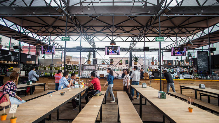 Cuenta con más de 15 restaurantes, donde podrás degustar deliciosos platillos de todo tipo. Algo que lo distingue de todos los mercados, es que, en cada uno de los locales se ofrecen diferentes opciones de vinos y cervezas artesanales.