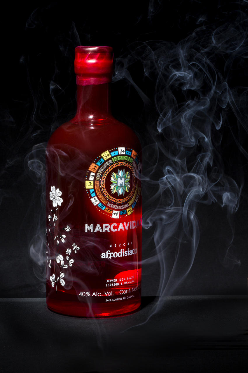 Ningún mezcal había prometido aumentar el deseo sexual, hasta que Marcavidas creó LA mezcla afrodisiaca, formada con flor de damiana, una planta que le otorga al mezcal un espíritu pasional y aventurero. Su color rojo lo distingue claramente, su botella, al destaparse, despide vapores herbales de romero, tomillo y menta.