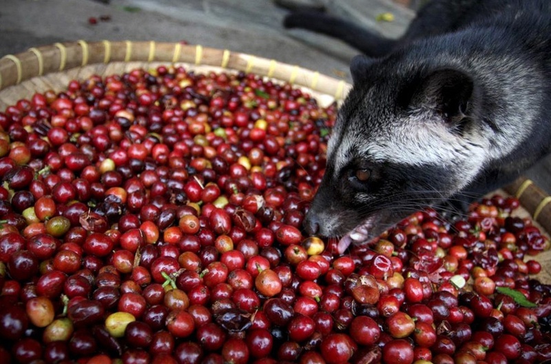 Este café se produce más en regiones de Asia, es el más caro del mundo por su proceso de producción. Una civeta (un mamífero carnívoro) come granos de café, una vez en su estómago rompe las proteínas que producen su sabor amargo y después los expulsa enteros en sus deposiciones, finalmente los granos se limpian y se tuestan para hacer el café. Un kilo puede costar 900€.