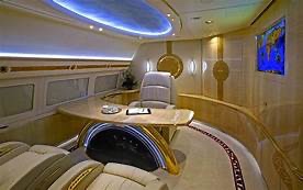 ● Airbus 380 del príncipe Al-Waleed, este avión cuenta con 200 kilos de oro repartidos en el avión, dispone de sauna, sala de conciertos y un estacionamiento para su Rolls Royce.