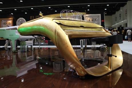 Este piano es, cuando menos, excéntrico y llamativo: su diseño curveo futurista sin duda llama la atención seas experto o no de la música. Su estructura está fabricada de una alineación de vidrio chapado en oro. Actualmente puedes adquirir uno de ellos por 1 millón 150 mil euros, es decir, cerca de 23 millones de pesos mexicanos.