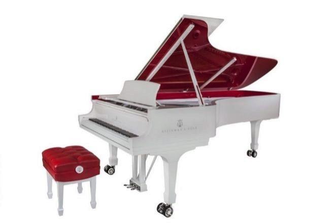 Este histórico piano de cola blanco y rojo fue un diseño único que pidió el vocalista de la famosa banda inglesa, U2. Bono había querido un piano elegante con buenos toques extrovertidos para poder subastarlo y poder donar todo el dinero a una buena causa. El millón 630 mil euros por los que fue comprado fue destinado a la beneficiencia.