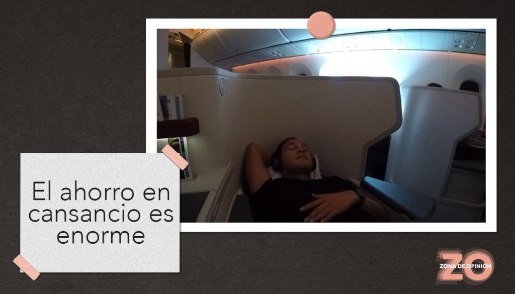 Puedes ir en vuelo de 10 horas, en clase turista o ejecutiva, y acabar hecho un desastre por la incomodidad, el dolor de cuello, la falta de sueño y el hambre. O puedes viajar en primera clase, dormir perfecto en asientos que se vuelven cama, apartado del ruido que hay en el resto de la cabina, y de paso comiendo delicioso.