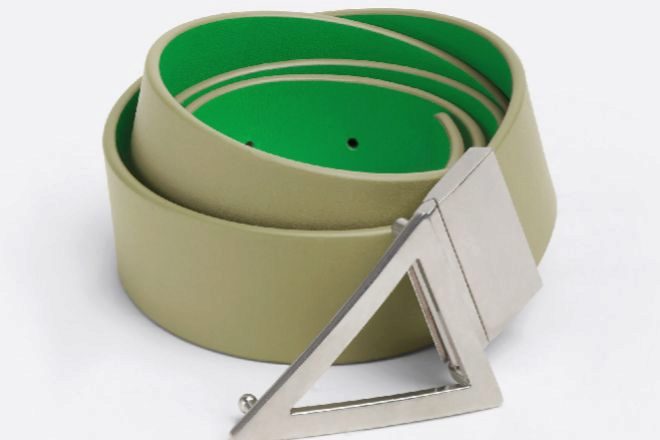 - Bottega Veneta: Este es un cinturón verde llamativo, es reversible y está hecho de piel con la hebilla metálica triangular, tiene un valor de 550 euros.