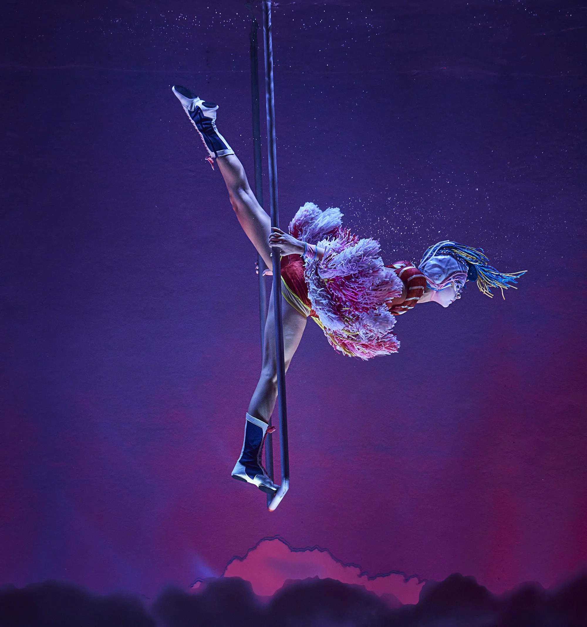 Los acuarios colocados por todo el teatro marcan el ritmo del show con la aparición de los acróbatas de agua, que se sumergen, danzan y emergen conforme la historia se desarrolla. La música en vivo y las rutinas acrobáticas se funden perfectamente con el tema de esta historia, que tiene a la memoria como eje principal.